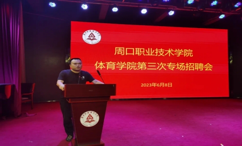2023年6月8日,体育学院于学前与艺术学院演播厅举办“周口职业技术学院体育学院第三次专场招聘会”。体育学院党总支书记范伟杰,体育学院副院长李海磊出席本次招聘会,招聘会由体育学院副院长李海磊主持。